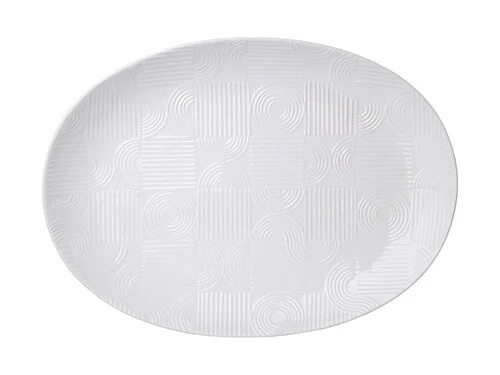 The Arc 41x30cm oval platter is a must-have for every host. Perfect for meals at home and celebrations, it features a sleek oval shape and a contemporary geometric design. Made from durable stoneware, this platter has an elegant white gloss finish that will bring a crisp, fresh feel to your summer spread. Ideal for canapes and salads to mains and shared dishes, this is a statement-making platter designed to be a feature on the table.