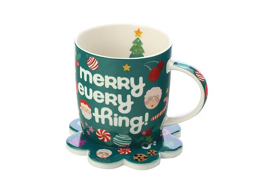 Brighten up your Christmas with this dark green mug and coaster set from the Sparkly Season collection. This festive set includes a 350ml porcelain mug and a matching coaster. Created in collaboration with Brisbane artist Kasey Rainbow, it features a design of graphic Christmas motifs. This set makes a fun gift idea for family and friends and is the perfect way to enjoy warming Christmas drinks over the festive period.