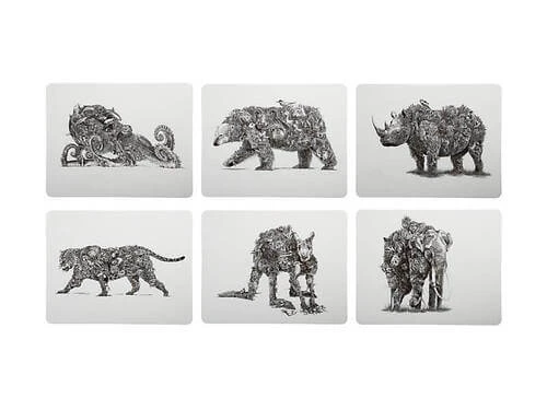 - Set of 6 placemats, each featuring a different animal design